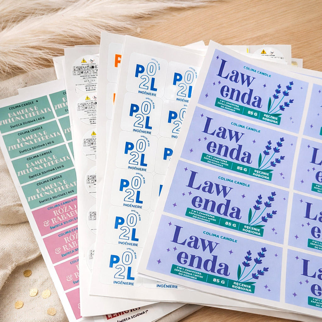 - naklejki drukowane na papierze eko i specjalnych foliach