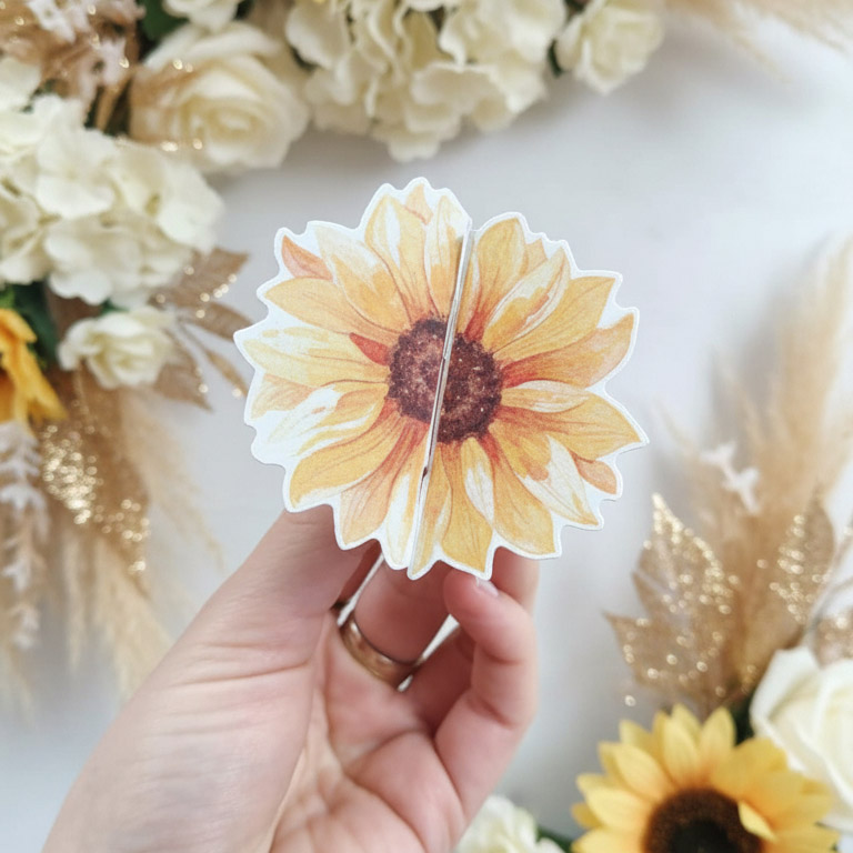Każdy element po złożeniu przypomina ozdobę – kwiat, motyla albo motyw dopasowany do stylu wesela. Gość widzi dekorację. Bierze ją do ręki. Otwiera. I dopiero wtedy zaczyna się zabawa.